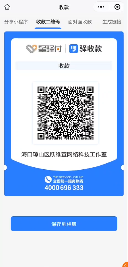 二、注册星驿付APP 三、用星驿付APP扫入网邀请码申请开通商户 主体类型根据自己情况填写,无执照的选小微,上传执照会自动识别 结算方式分三种、法人对私、非法人对私、对公,按需选择。场所照片按要求上传。下一步输入手机验证码提交审核。等待通过即可。 四、开通远程收款码小程序 星驿付APP--经营工具--驿收款---点免费开通--等待1-3分钟。驿收款开通后会有短信通知,短信里的账号密码是在电脑端后台登录的,请妥善保管。 驿收款开通后再次点击驿收款即可:添加--添加模版,或者无需模板直接创建。 如上图根据需要添加小程序收款页面的组件,电脑端后台装修小程序更方便 配置好后选择保存并发布,发布成功点去收款,即可生成小程序的单子收款码。 如需其他收款设备或人工协助,可联系15687389988(微电同号)星驿付产支持实时到账,产品众多,可满足不同场景收款。包括智慧场景搭建、行业智慧收银系统对接。